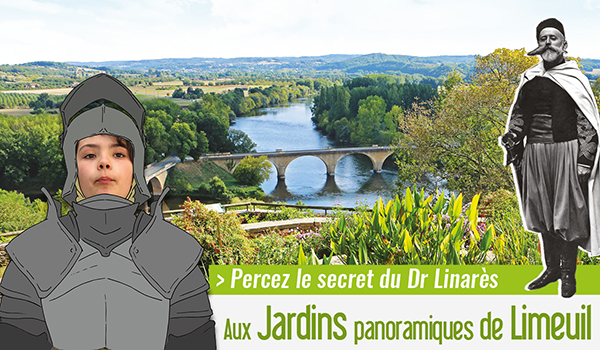 ► Menez l'enquête en parcourant les jardins avec Harry, un enfant du village. Avec lui dénichez des indices pour découvrir l'identité des seigneurs qui se sont succédé à Limeuil. Décryptez les symboles et décodez les messages pour résoudre ce mystère !